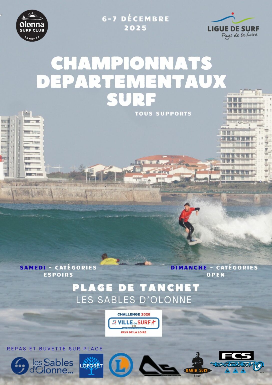 Les inscriptions sont ouvertes pour les deux compétitions, jusqu’au mercredi 3 décembre minuit. Spot de Tanchet, aux Sables d’Olonne. Report possible pour ces compétitions les 13 et 14 décembre.