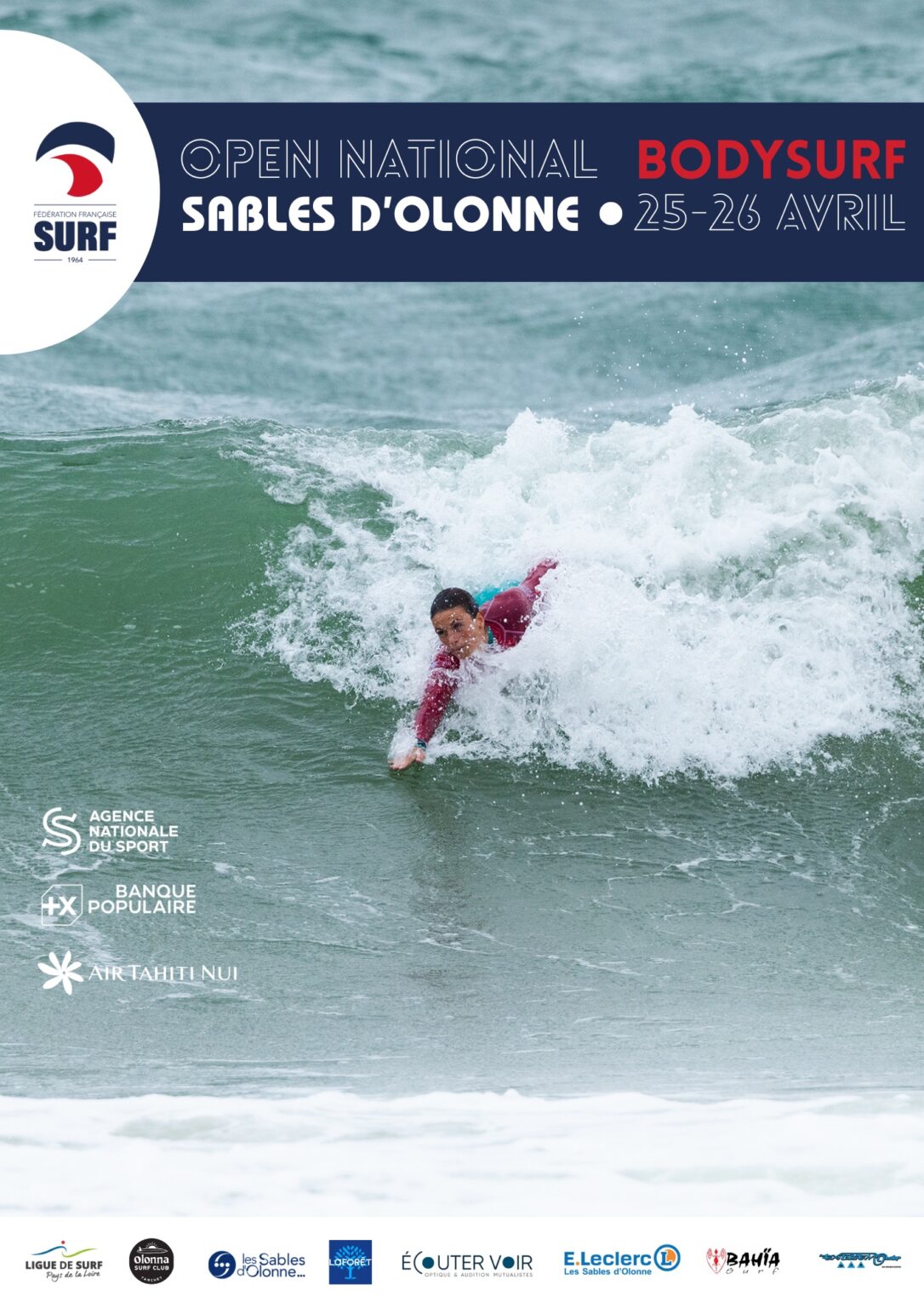 Lancement des inscriptions pour les Opens de France de bodysurf et Kneeboard, qui auront lieu sur le spot de Tanchet, aux Sables d’Olonne, les 25 et 26 Avril prochain.