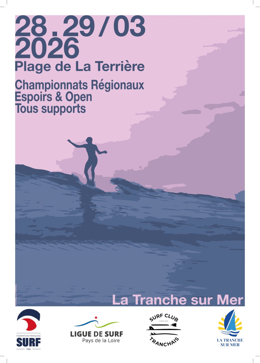 Lancement des inscriptions pour les deux compétitions, espoirs le samedi 28 mars et opens le dimanche 29 mars, sur le spot de la Terrière, à la Tranche sur mer.