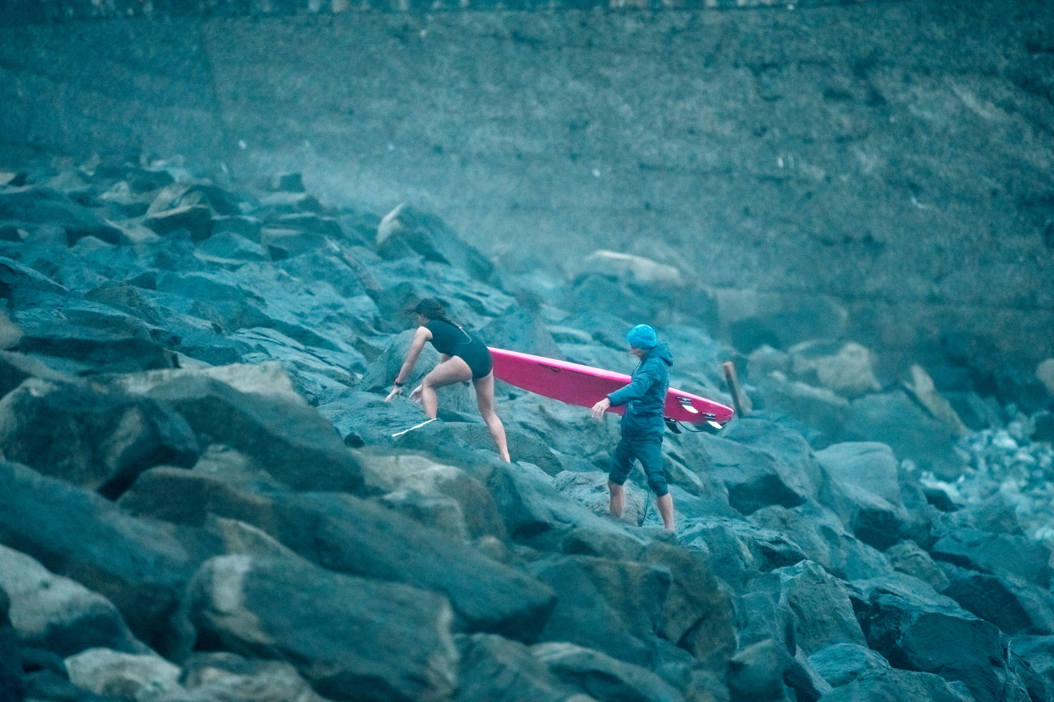 Notre jeune chargeur casse son leach, sur un énorme set avant le début de la série, et sa planche finie concassée dans les block.