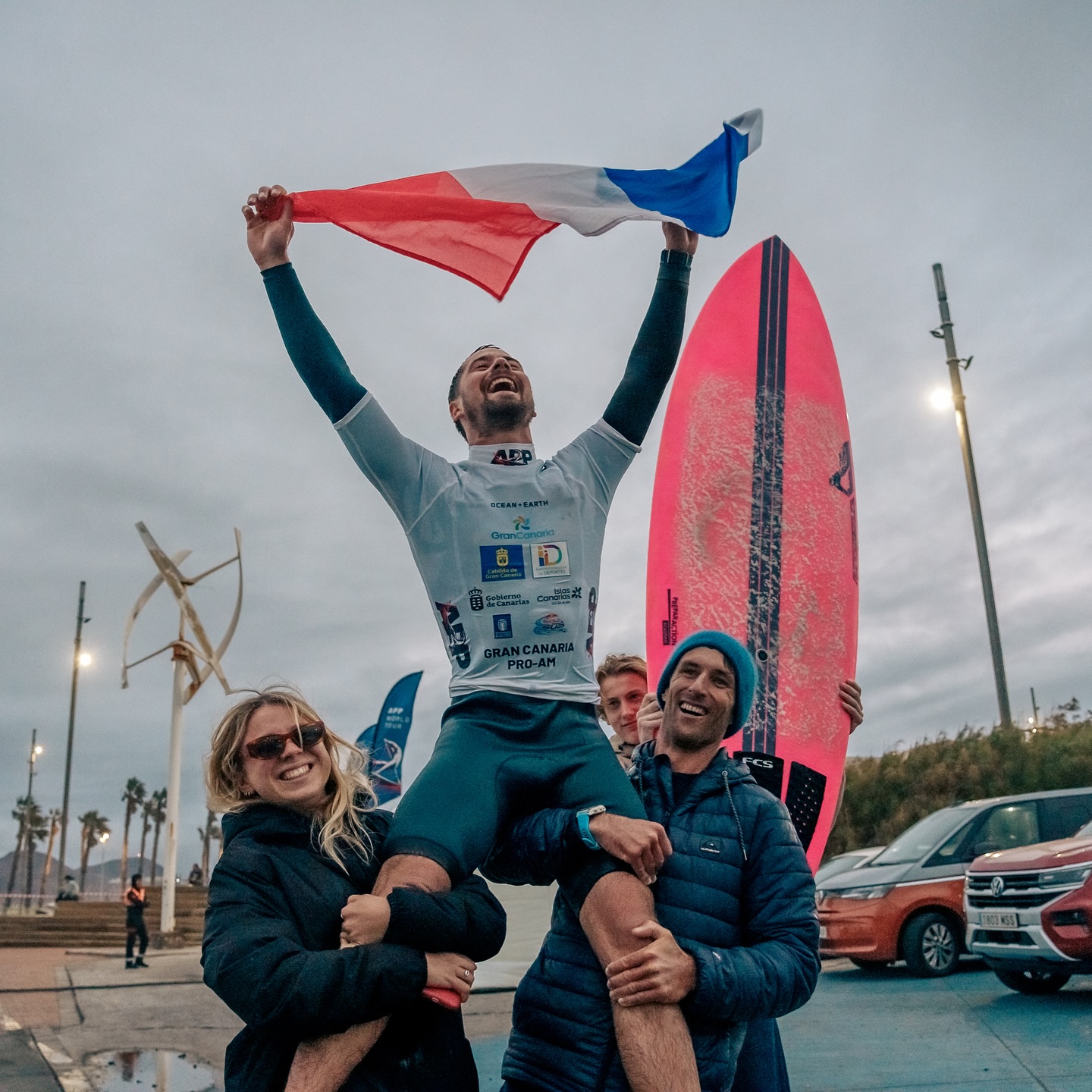 Mais une petite natation, et un tour sur le jet, il se retrouve au pic avec une planche de prêt, pour finalement remporter cette finale, après laquelle il courait depuis quelques années.