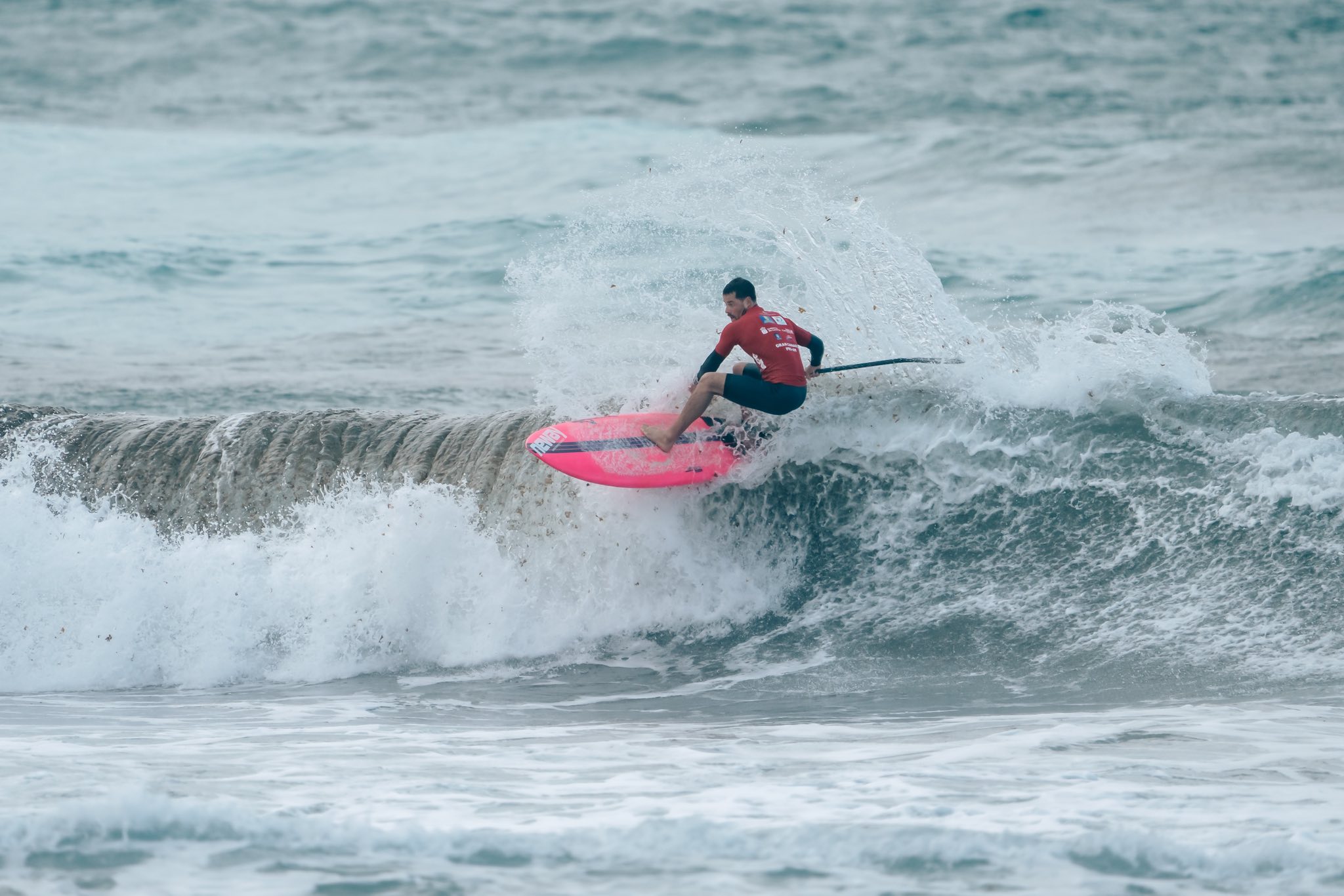 En effet cette semaine se déroulait aux Canaries l’étape mondiale de SUP surfing, et parmi le contingent Français emmené par les cousins Carpentier, dont Benoît s’offre un doublé mondial, SUP longboard et SUP surf.
